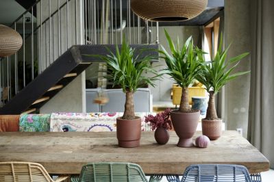 A houseplant that looks striking all year round thrives on neglect and is easy to grow: Yucca. What more could you ask? Yuccas make great houseplants, looking rather like indoor palm trees with their bare stems and rosettes of long leaves. Although mature Yuccas can eventually reach a height of several metres, they are very slow-growing and will live happily in pots for a long time.