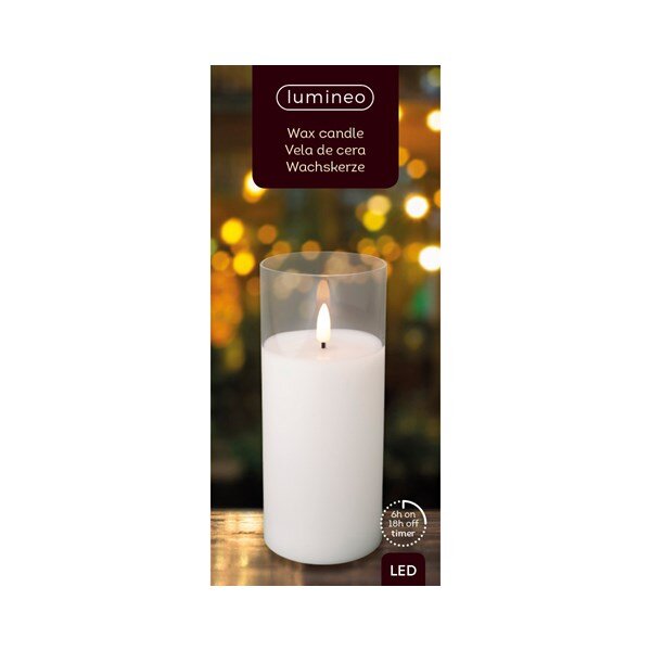 17.5cm LED Wick Candle Glass (Battery Operated/Indoor)