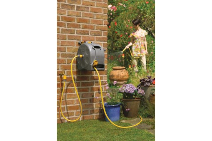 The Compact Reel has a 2-in-1 functionality – it can be wall mounted or used as a free standing reel.