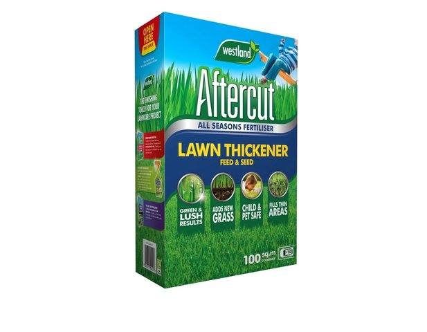 Aftercut Lawn Thickener is a mix of lawn feed and grass seed, that greens and thickens the lawn in one easy step. It invigorates existing grass and adds new life to your lawn in just three days. It is also child and pet safe so you don’t have to worry. Use Aftercut Lawn Thickener Feed & Seed in spring through to autumn for a luscious lawn all year round.