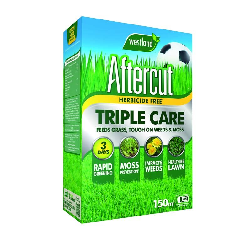 Aftercut Triple Care is a lawn treatment formulated to tackle weeds without herbicides. The added iron creates challenging conditions for moss to thrive. The balanced nutrient level creates a healthier lawn that will look greener in just 3 days.