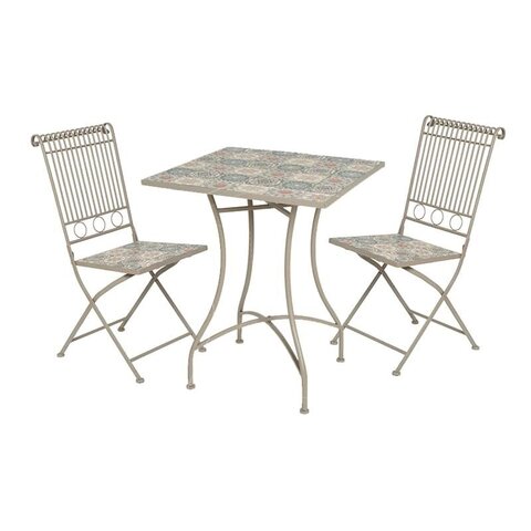 Relax in style and comfort with the Kaemingk Avignon Bistro Set, ideal for outdoor leisure. Featuring two folding chairs and a matching side table, this set is perfect for enjoying a drink or a good book under the sun. The mosaic seat and tabletop design add a touch of elegance to your outdoor space.