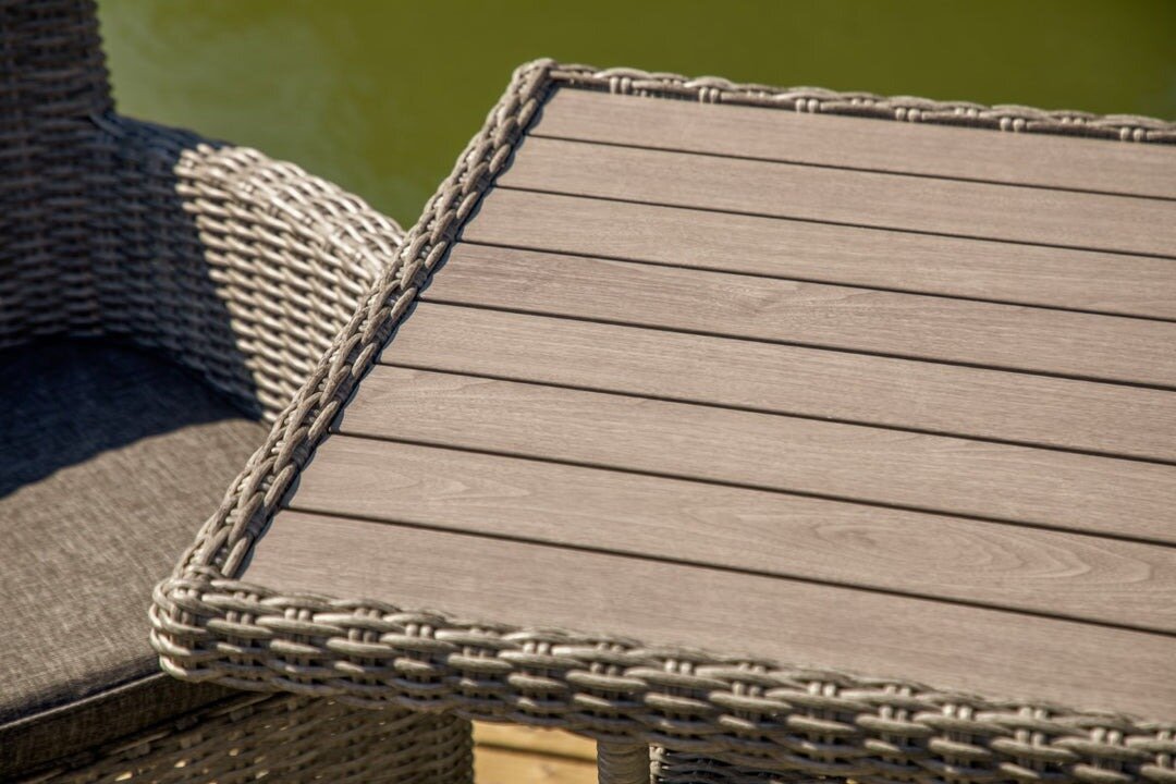 Made of strongly woven synthetic wicker, the Bermuda Dark Bistro set can withstand insect attacks, and harsh weather damage and resist mould and mildew.