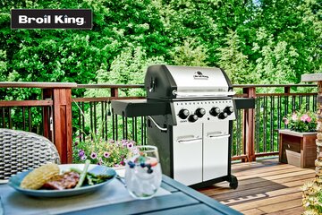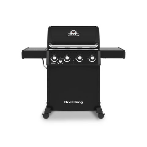 The Broil King® Crown™ 430 features a 2,968 sq. cm primary cooking surface and includes 4 stainless steel Dual-Tube™ burners, cast aluminium cookbox, reversible heavy-duty cast iron cooking grids, stainless steel Flav-R-Wave™ cooking system, and electronic ignition.