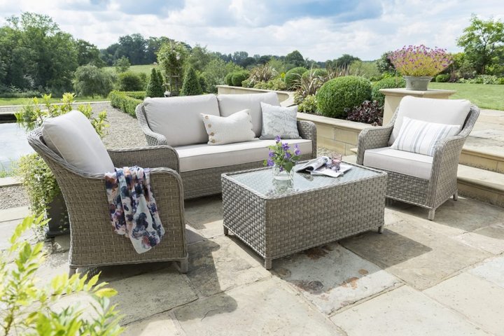 The Charlbury Lounge set uses traditional wicker with soft seat and back cushions to help you relax in your timeless, British garden.