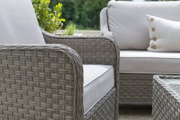 Sit outdoors or indoors and enjoy the Charlbury outdoor lounge furniture all year round. The UV resistance keeps the furniture lasting longer. Relax on luxurious, wicker conservatory furniture during the winter months and when the sun comes out it becomes patio furniture.