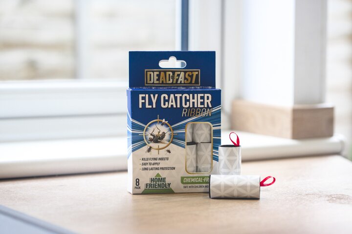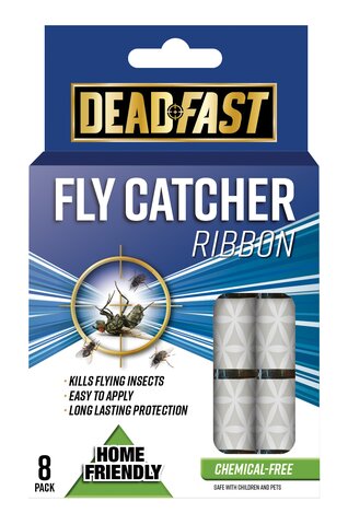 Deadfast Fly Catcher Ribbons provide chemical-free fly control both indoors and outdoors. Simply pull out and hang for long-lasting protection against flies. These ribbons are especially effective in kitchen and food preparation areas where flies are troublesome.