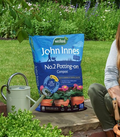 Westland John Innes Peat Free No.2 Potting-on Compost feeds and establishes plants for a healthier life. Developed specially to also feed plants for four weeks.