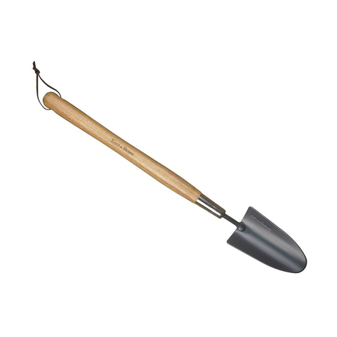 A solid forged, high quality Kent & Stowe Border Hand Trowel made from carbon steel and beautiful ash wood. Featuring a midi-sized handle for extra reach.