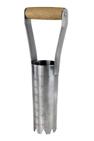 Use this traditionally styled, high quality Kent & Stowe Large Hand Bulb Planter to create uniform planting holes. It is made from high quality stainless steel with a beautiful ash wood handle. With a serrated edge for easier entry into the soil; it removes a 6cm diameter core from the earth. This is perfect for larger bulbs, seed potatoes and bedding plants.