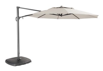 The parasol is made to last, with a sturdy powder-coated aluminium frame and a hard-wearing polyester canopy. The impressive parasol features a foot pedal that allows you to swivel the canopy 360° easily. The parasol can also be tilted vertically, providing optimum protection from the sun. The shower resistant canopy offers UV50+ sun protection. It can be easily opened and closed with a wind-up mechanism using the crank provided.