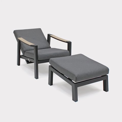 • 1 x Reclining Chair with back and seat cushions and 1 x footstool with cushion.