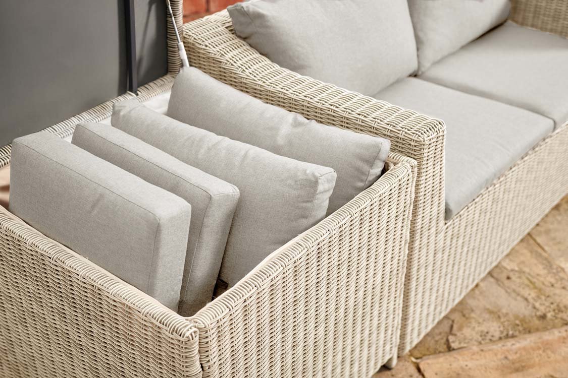 Kettler Palma Compact Corner Set White Wash with grey taupe cushions