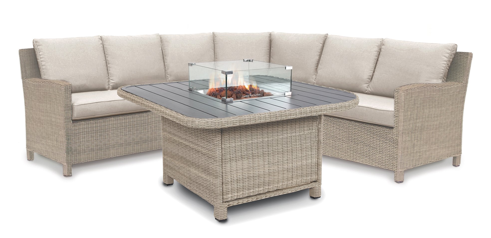 Kettler Palma Grande Oyster With Fire Pit Table Bench And Armchair