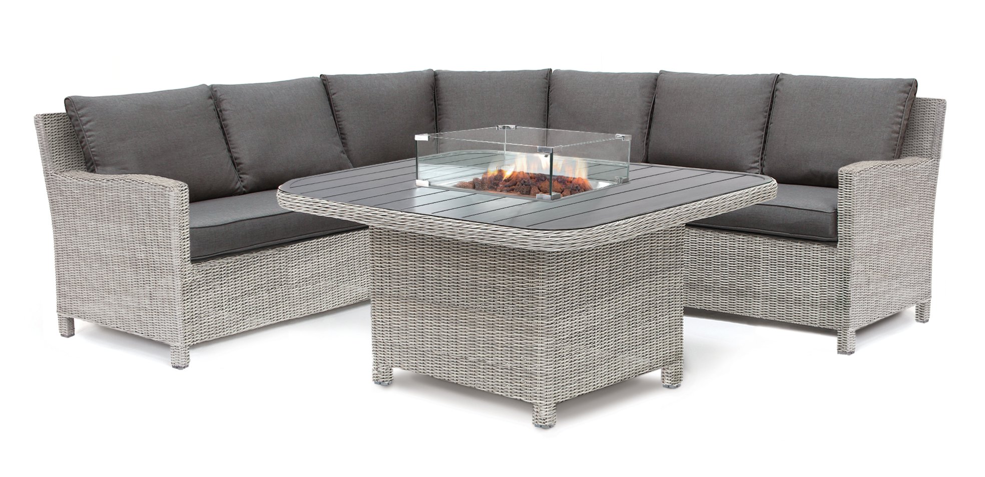 Kettler Palma Grande White Wash With Fire Pit Table Bench And Armchair