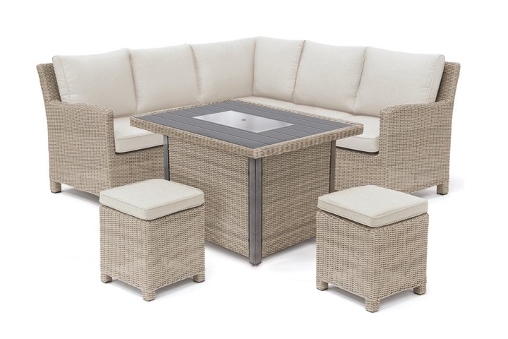 Made from hand woven weatherproof wicker, this garden furniture set comprises the corner sofa and two stools. Have the garden furniture set you desire. Choose from a wide range of Palma Casual Dining tables including fire pit table.