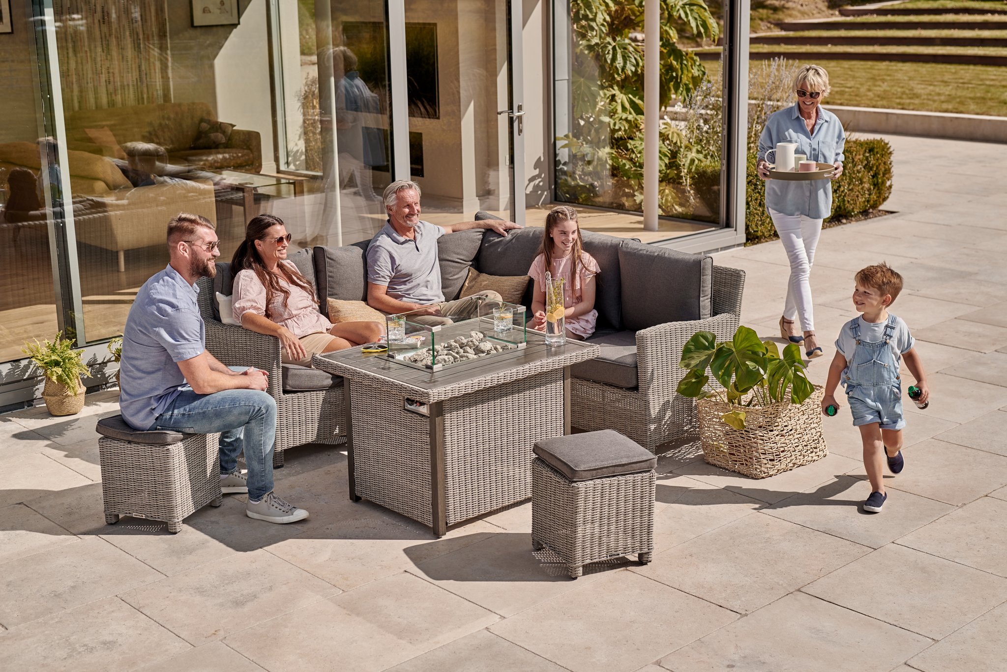 Made from hand woven weatherproof wicker, this garden furniture set comprises the corner sofa and two stools. Have the garden furniture set you desire. Choose from a wide range of Palma Casual Dining tables including fire pit table.