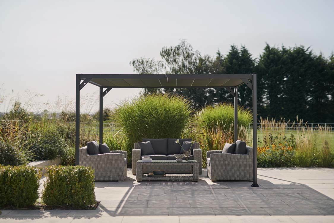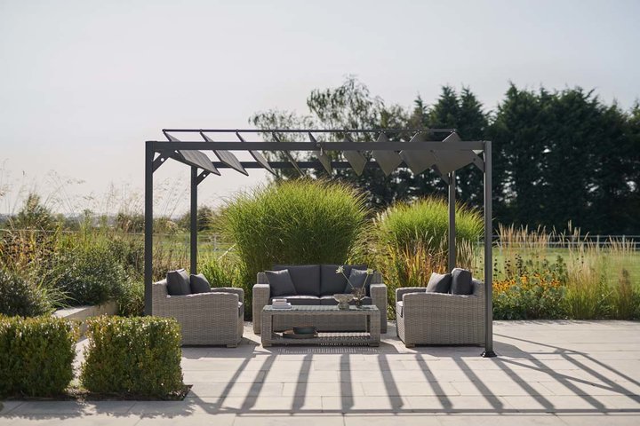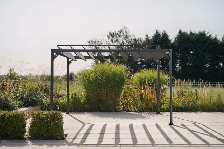 The Panalsol® Louvre is suitable for any occasion, whether it’s a BBQ party, a birthday celebration or even an intimate home wedding, as it will ensure your guests can relax outdoors in comfort. The canopy is big enough to provide shade to a large corner sofa. The sturdy frame can be bolted to the ground to securely fix it in place.