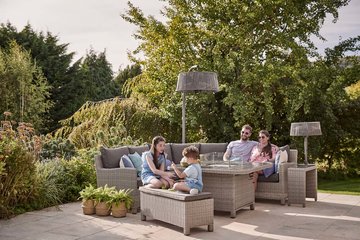 The powerful Plush Electric Overhanging Heater is made from durable steel, which is rustproof and weatherproof. The wicker lampshade gives the patio heater a charming, timeless style and beautifully compliments the range of Palma Wicker furniture. Create an intimate setting in your garden and keep your guests warm with the Kalos patio heater, boasting double frost halogen heating lamps it can reach impressive heat temperatures of up to 1800W.