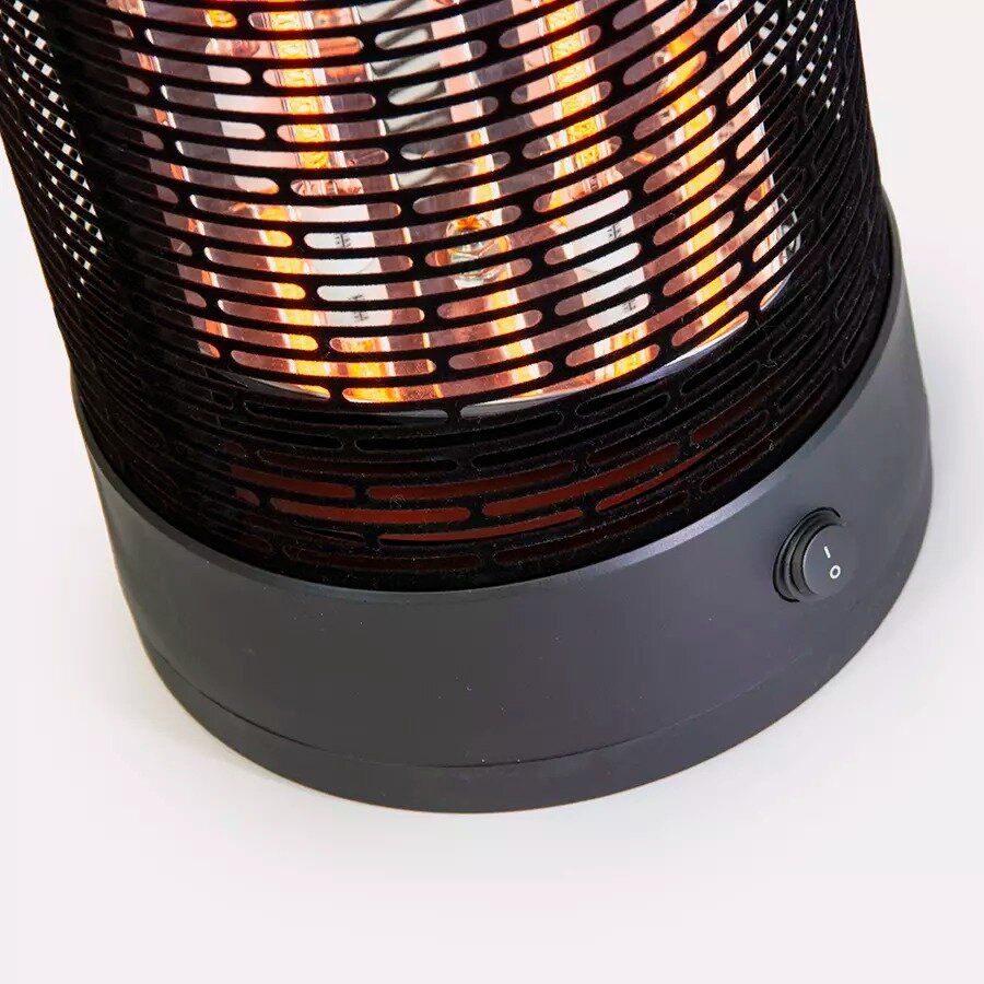 This small heater can blend into the background easily but still make an impact on a cool evening outdoors. It has a double carbon tube and power of 600/1200W. It rotates and also has a timer option – 20/40/60 minutes.