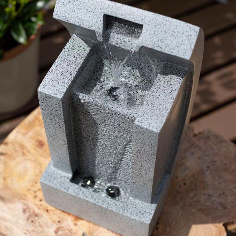 With a stone-effect finish, this water feature has a sophisticated and contemporary look that will complement any décor.