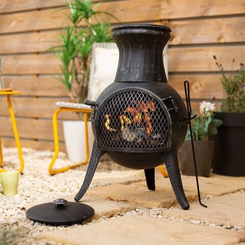 Our pewter Squat Chimenea features robust cast iron legs and is a sturdy wood fired patio heater suitable for smaller gardens or terraces. Simple, stylish and functional, this smaller model provides a good level of warmth.
