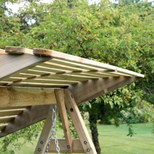 The Miami Swing Two Seater has a fixed wooden canopy and a comfortable 1.2m swing seat. The elegant, yet strong design comes with two removable shelves that easily slot onto the armrests for summertime drinks.