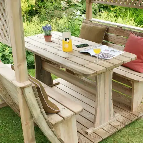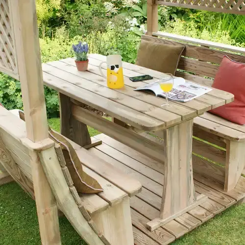 Create a sanctuary in which to enjoy the garden with the unique and innovative Noah's Arbour. Complete with a floor and combined roof, the new concept Noah's Arbour provides shelter and shade to the integral table and benches, whatever the weather.