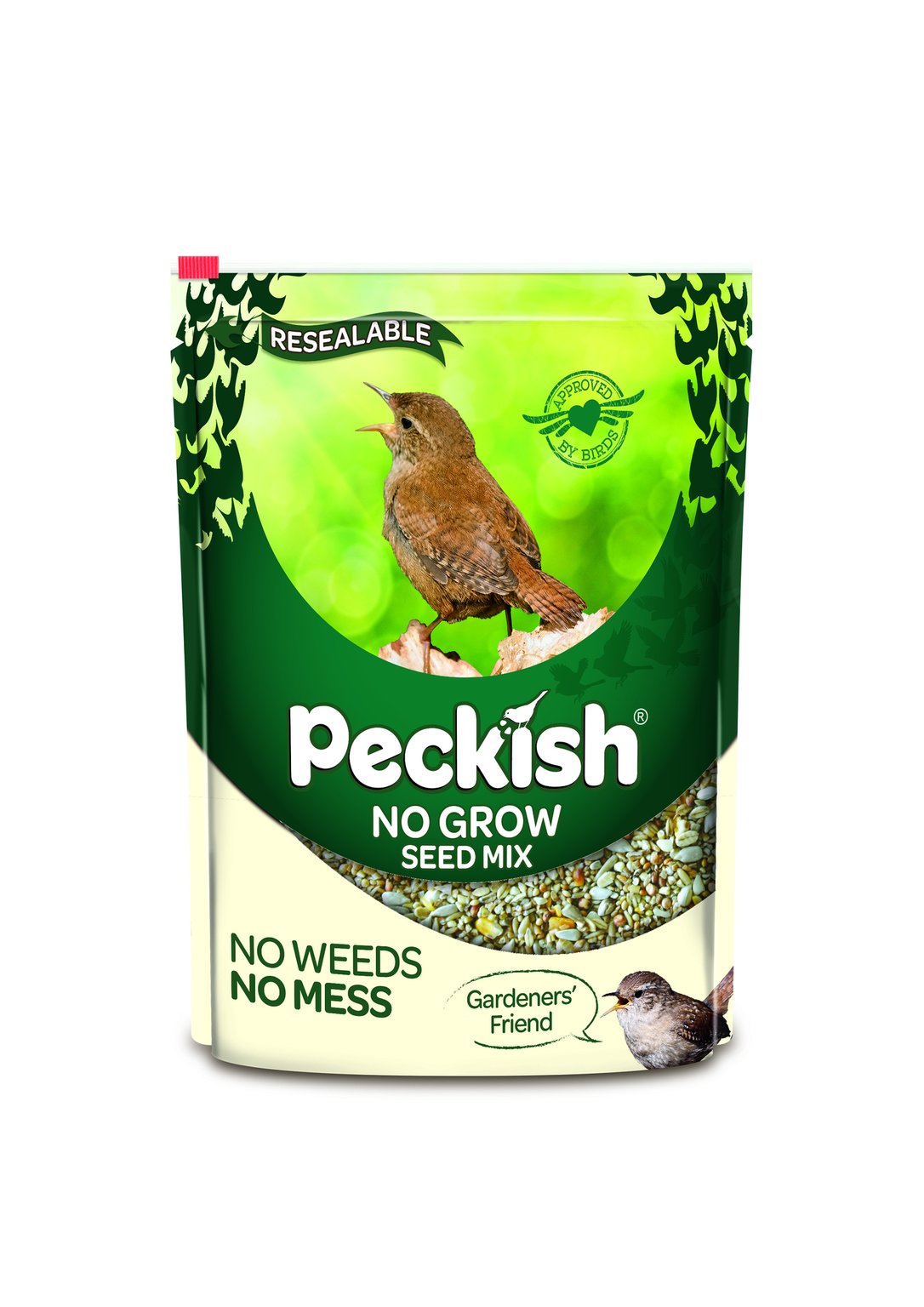 Peckish No Grow Seed Mix is a special blend that uses ingredients that will not grow in your garden. Ideal for gardeners! All the seed’s husks have been removed so the mix is 100% edible. The ingredients have also been flaked or kibbled which damages the endosperm and prevents them from growing* – this means there will be no weeds! This mix also contains our Calvita® Vitamin Pellet, a unique blend of vitamins and minerals to help garden birds stay healthy. Furthermore, our Peckish No Grow Seed Mix is now in plastic free packaging so you can feel even better about feeding the birds.