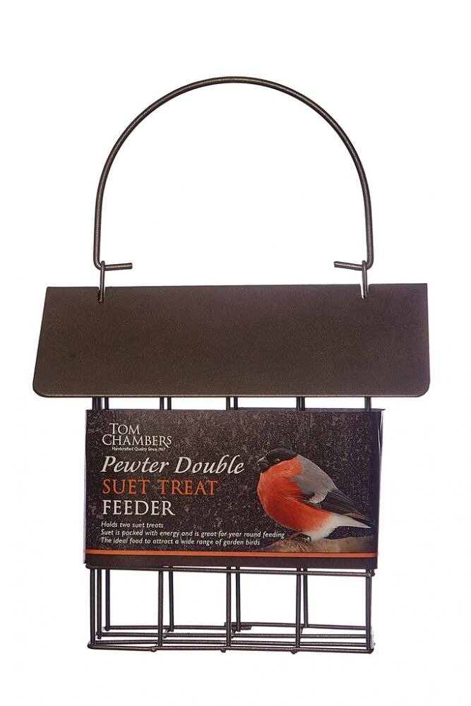 The Tom Chambers Pewter Double Suet Treat Feeder is ideal for holding two suet fat balls to ensure your garden visitors have easy access to food. Suet fat balls are a very nutritious food source for wild birds. They offer beneficial food supplements in addition to their natural diet, which is especially important during colder months. This feeder can easily hang from a branch, wall mount or feeding station.