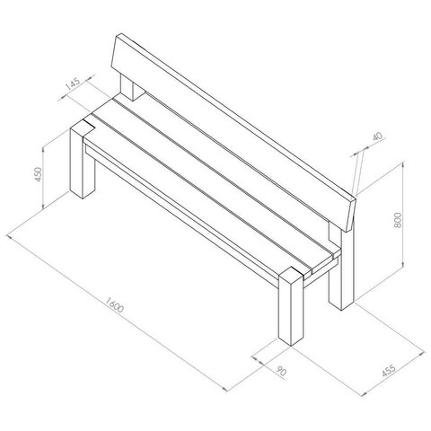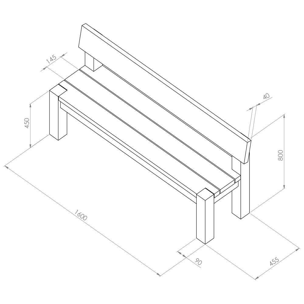 Benches: 1.6m (wide) x 0.45m (deep) x 0.917m (high).