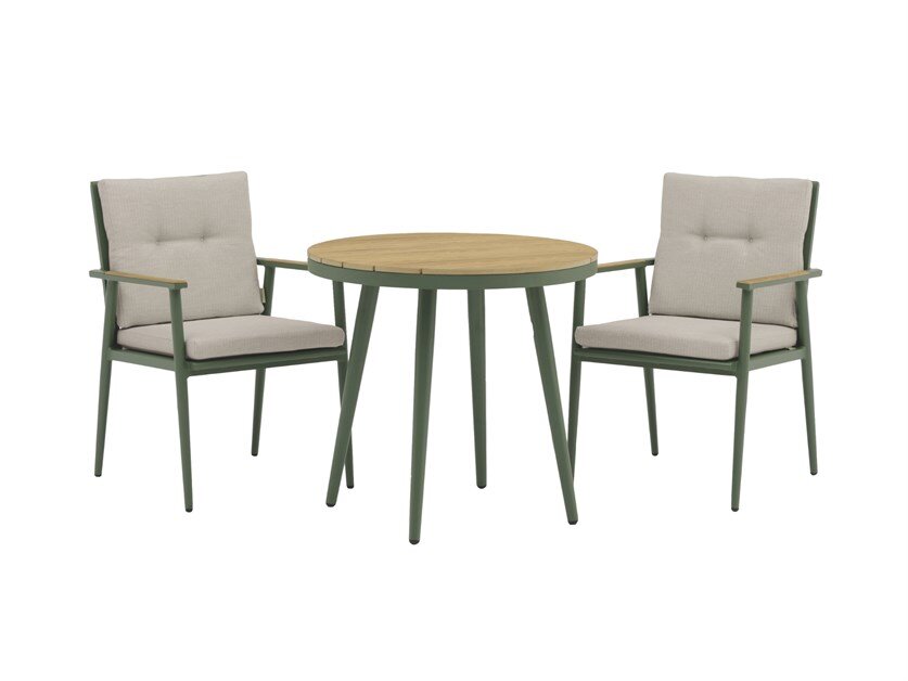 Designed in a lovely shade of sage, the RHS Wisley Sage Round Bistro Set blends beautifully with natural settings. Featuring criss-cross seat back detailing offset by a pared-back profile, and finished with complementary mist-coloured fabric, it's the ideal choice for those wishing for a simpler style.