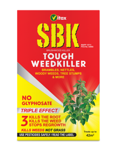 A soluble concentrate, SBK Brushwood Killer has been formulated not to harm grass but tackle tough weeds right at their roots to prevent re-growth.