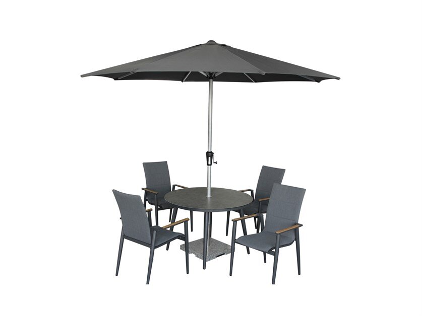 Write a review about "Sofia Round Table with 4 Delux Armchairs, Parasol & Base Set - Anthracite"