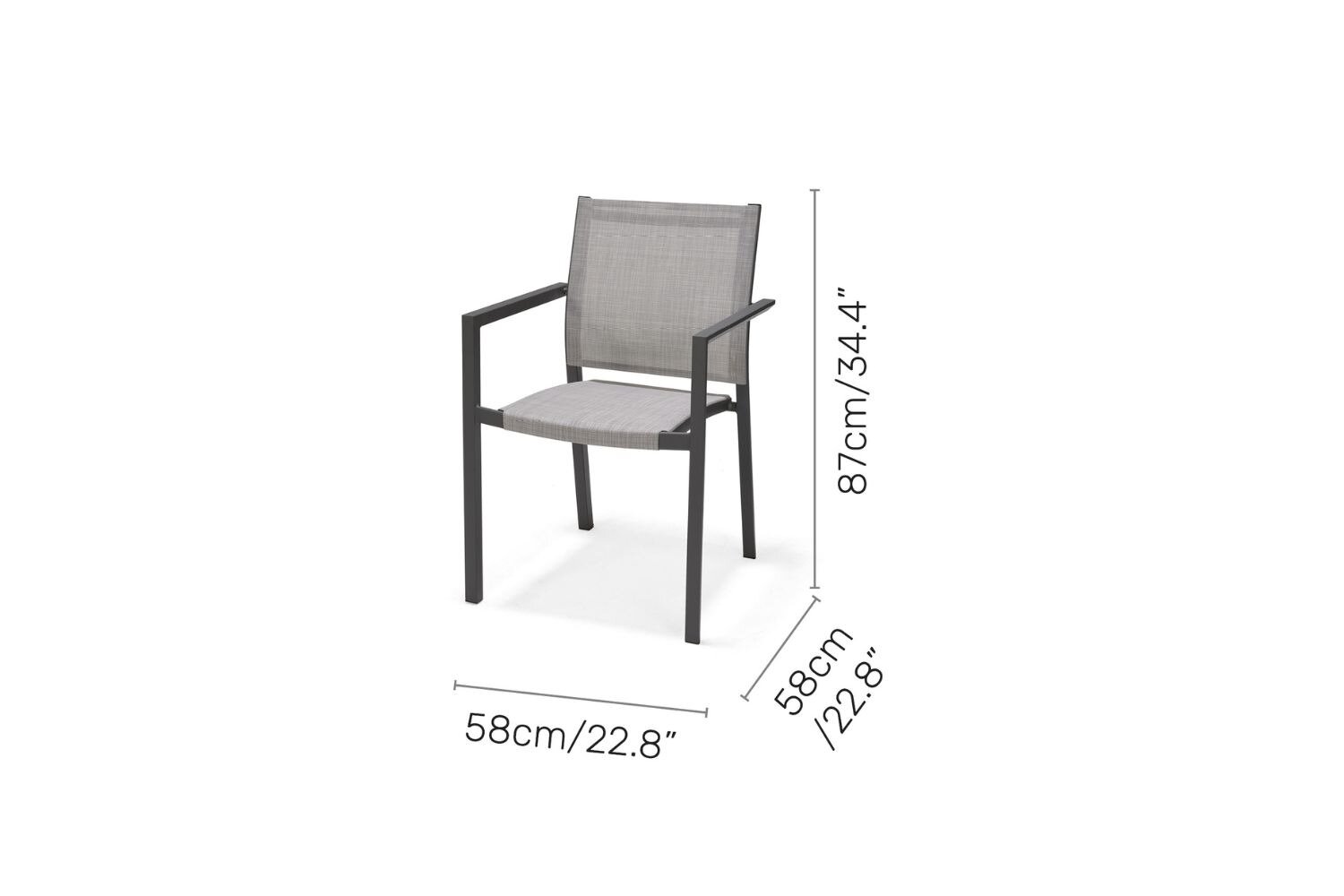 Stacking chair in rust-free grey-coloured aluminium frame with highly durable and maintenance-free Weather-net® support.