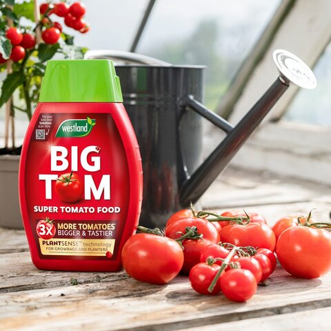 Westland Big Tom Tomato Food 1.25L now gives you 3 x more, bigger, healthier as well as tastier tomatoes, all season long. Our Big Tom Tomato Food has our unique PlantSense™ Technology. This means there is just the right amount of nutrients and a water management system perfected to work with peat free growbags and planters. Including iron and magnesium to give you greener plants, it is also rich in seaweed for healthy root growth giving you great tasting tomatoes.