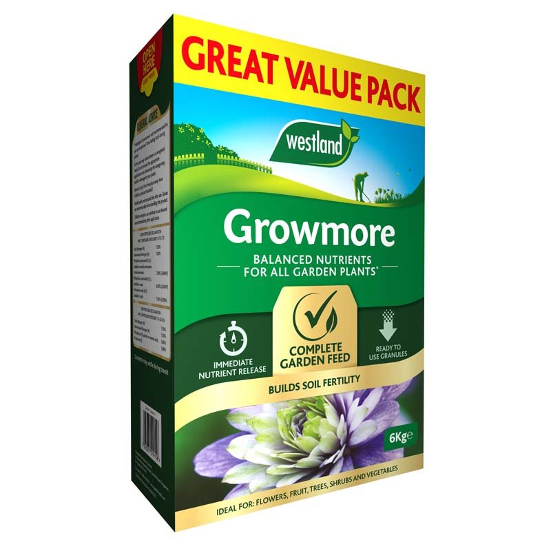 Westland Growmore provides the three major plant nutrients in equal proportions. This makes it a superb general-purpose feed for use all around the garden. Its balance of nutrients ensures even stimulation of growth in all plant parts, meaning lots of fruit and flowers, abundant foliage as well as a strong root system.