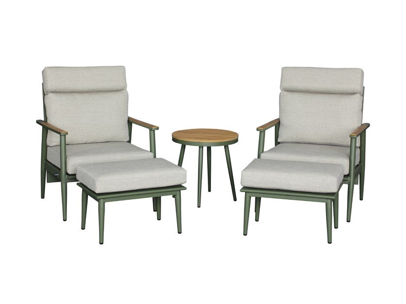 Perfect for stylish and versatile outdoor living, the Wisley 2 x Reclining Sofa Chairs with Footstools & Round Tree-Free Coffee Table in Sage combines comfort and durability. The reclining chairs and footstools feature durable aluminium frames and deep season-proof Eco Mist cushions, while the Round Tree-Free wood-effect coffee table provides a natural, low-maintenance surface. Ideal for relaxed afternoons, this set blends timeless style with practical functionality.